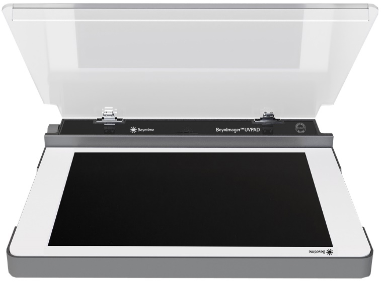 碧云天的BeyoImager™ UVPAD LED紫外凝胶透射仪,即BeyoImager™ UVPAD LED UV Transilluminator,简称UVPAD,也称紫外仪、紫外切胶仪、小型台式紫外切胶仪、安全紫外切胶仪、超薄型紫外切胶仪、LED透照仪、凝胶电泳透照仪、紫外凝胶成像仪、紫外透射仪、紫外透射切胶台、紫外观察仪、紫外分析仪、UV Transilluminator、LED Transilluminator、UV LED Transilluminator、Desktop UV Transilluminator、UV Gel Cutting Instrument、UV Gel Cutting Machine、UV Glue Cutter、Safe UV Transilluminator、Ultra-Thin UV Gel Cutting Machine、UV Gel Imager、UV Analyzer等,标配便于拍照的迷你暗室,是一款美观、轻薄、实用、安全,可观察多种安全荧光染料,专为凝胶电泳成像观察的光照强度可调并具有参数设置记忆功能的小型紫外凝胶透射仪。本产品可以广泛用于分子生物学实验,凝胶电泳染色后对核酸等的观察、切胶与拍摄。本UVPAD LED紫外凝胶透射仪为碧云天BeyoEquip™高品质仪器系列产品之一。