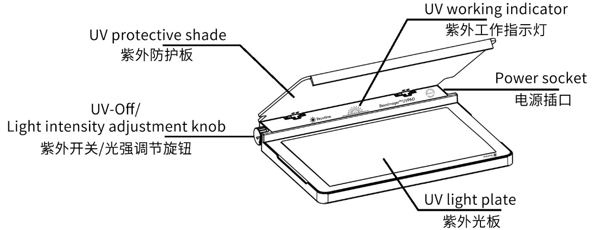 图1.碧云天BeyoImager™ UVPAD LED紫外凝胶透射仪(E6952)示意图。
