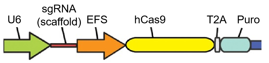 图1. 表达sgRNA、Cas9和puromycin抗性的pLenti-sgRNA质粒关键图谱信息。