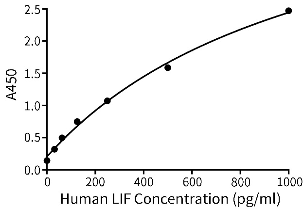 图3.Human LIFELISA Kit的标准曲线。实测数据会因实验条件、检测仪器等的不同而存在差异,图中数据仅供参考。| 产品编号 | 产品名称 | 包装 |