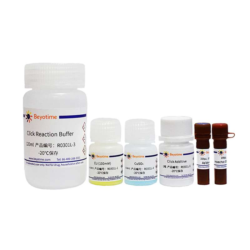 | R0311S/L | BeyoClick™ EU-647 RNA合成检测试剂盒 | 50-500/200-2000次 |