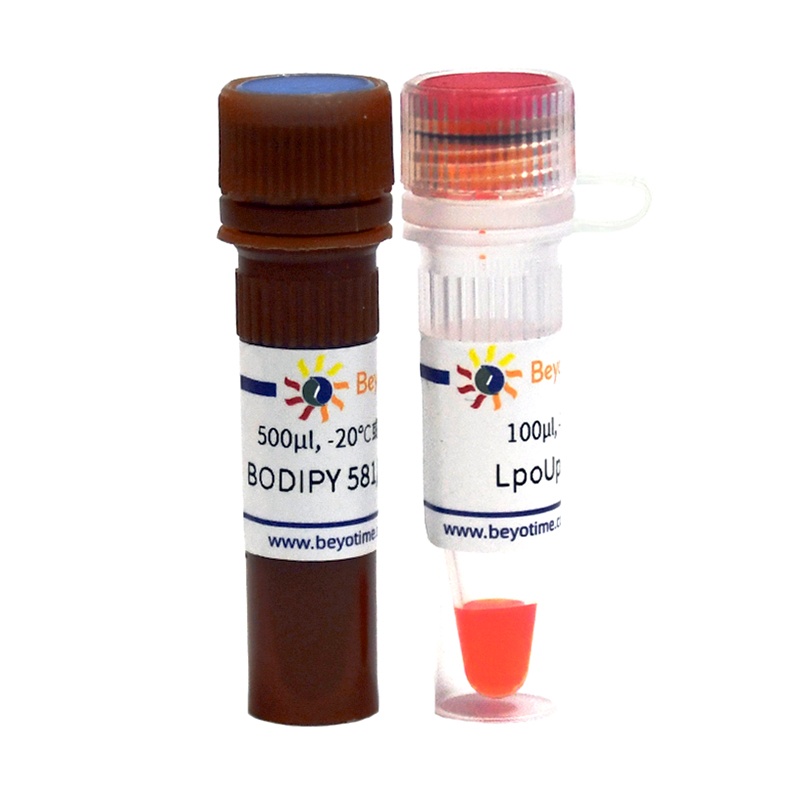 碧云天生产的脂质过氧化检测试剂盒(BDPY 581/591 C11) (Lipid Peroxidation Assay Kit with BDPY 581/591 C11或Lipid Peroxidation Assay Kit with BODIPY 581/591 C11)是一种以BDPY 581/591 C11 (也称BODIPY 581/591 C11)为荧光探针,快速高灵敏地检测细胞内脂质过氧化程度变化的试剂盒。本试剂盒可使用荧光显微镜、激光共聚焦显微镜、荧光酶标仪、流式细胞仪等荧光检测系统进行检测。